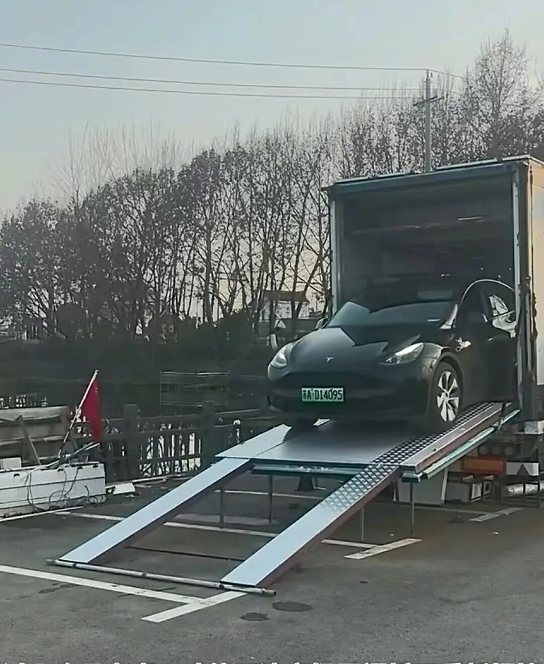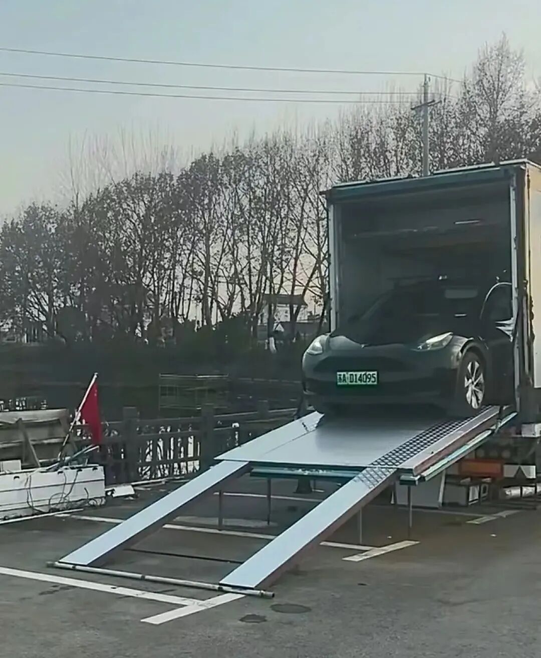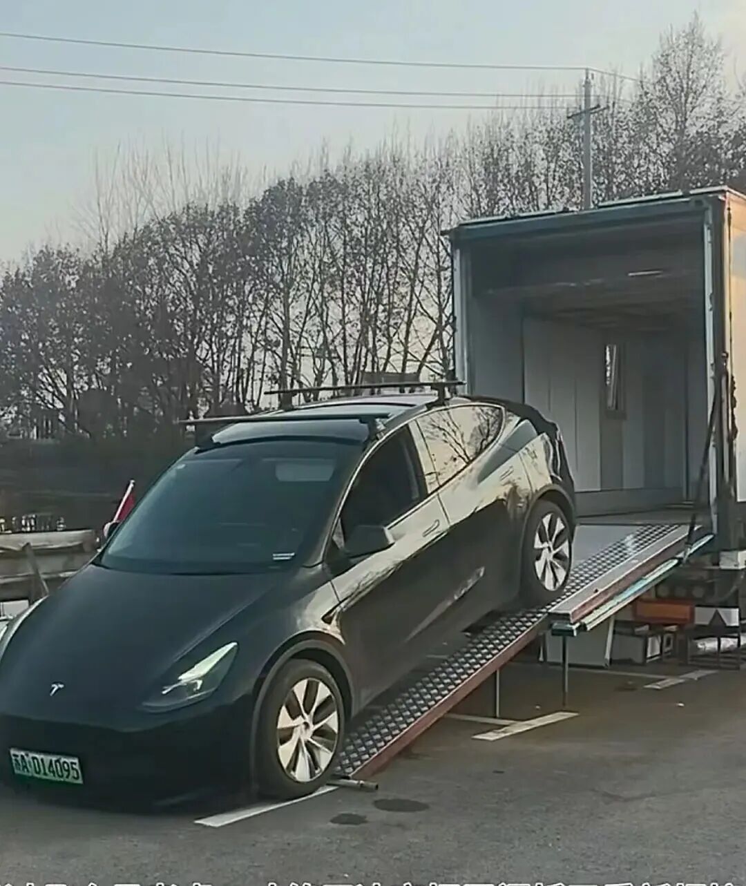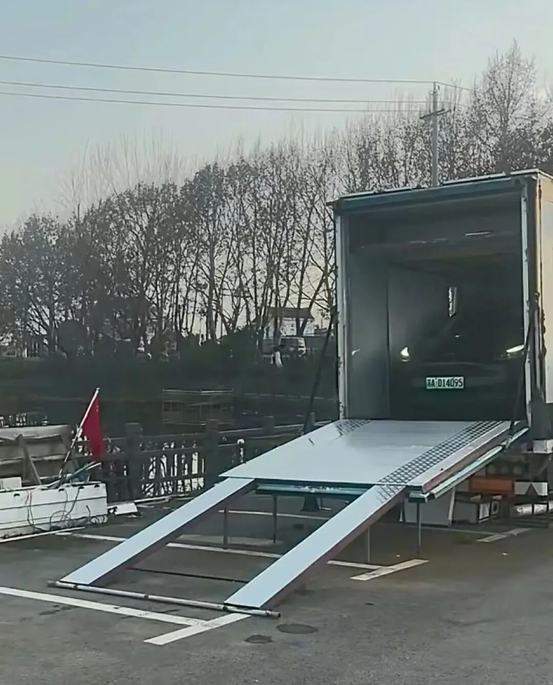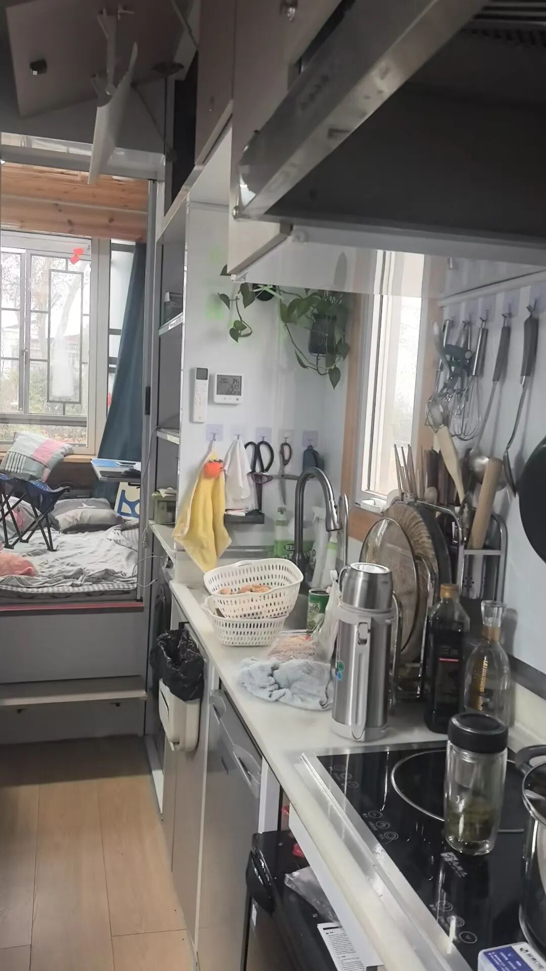 房车后半部是客厅,也是车库,尾门改成了爬梯,方便小汽车驶入,沙发吊起来就是车库